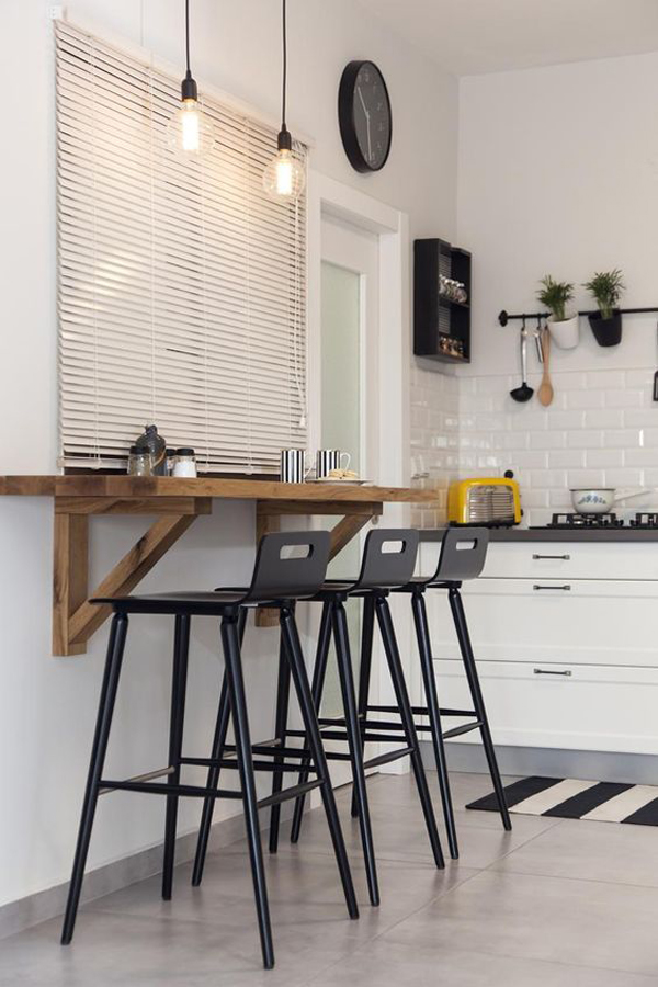 Dapur mini bar cantik dengan meja yang menempel di dinding.