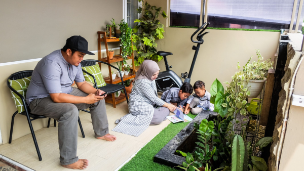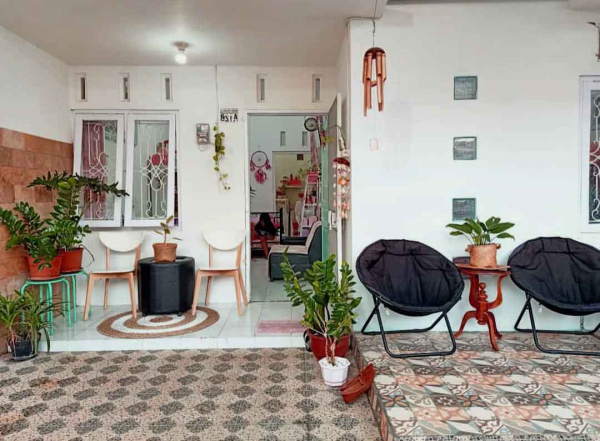 Setengah bagian dari teras yang dijadikan taman tempat bersantai yang asri.