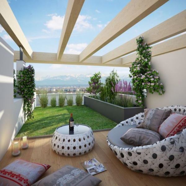 Jika rumah Anda memiliki pemandangan yang indah atau ingin menciptakan area luar yang nyaman, pertimbangkan untuk memiliki teras rooftop. Tempat ini dapat menjadi tempat yang sempurna untuk bersantai, mengadakan pertemuan dengan teman-teman, atau menikmati pemandangan kota.