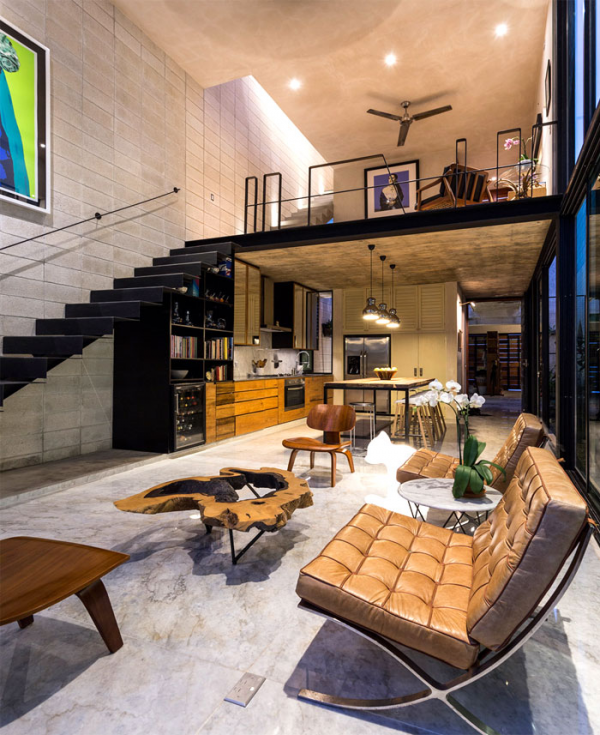 Suka dengan lantai semen eksposnya yang tampak natural.