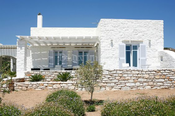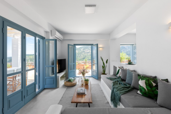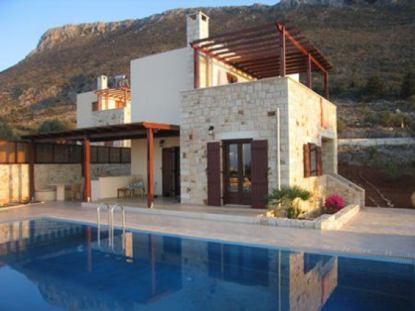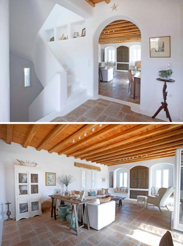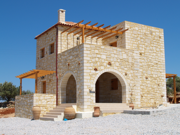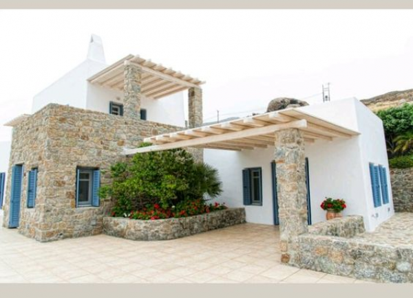 Rumah gaya Yunani dengan dinding batu alamnya.