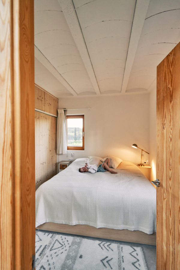 Dengan interior kamar yang hangat ya moms.