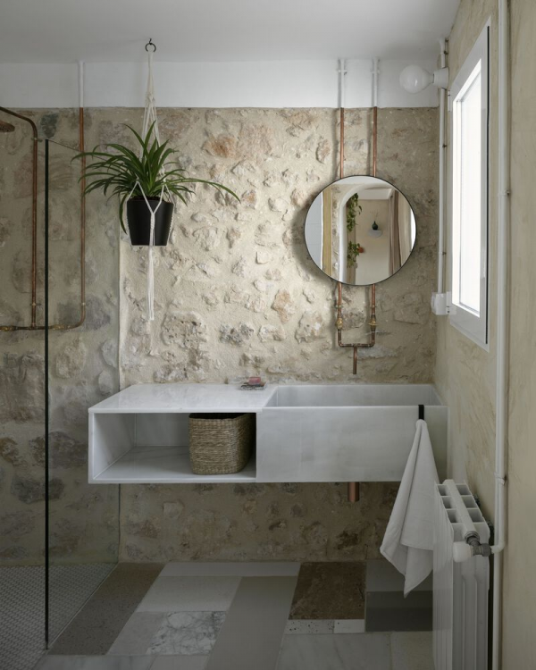Suka dengan sentuhan batu alam pada kamar mandinya.