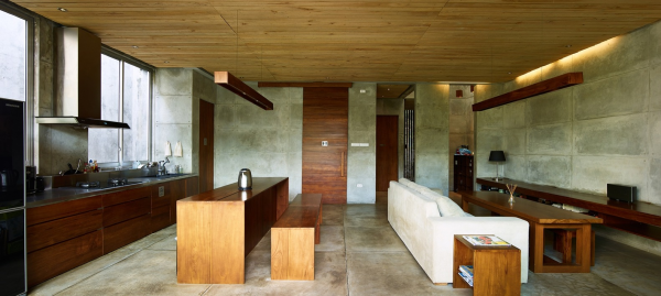 Rumah modern dengan sentuhan dinding semen ekspos ini merupakan karya rumah desain Realrich Architecture Workshop, terletak di Jakarta.