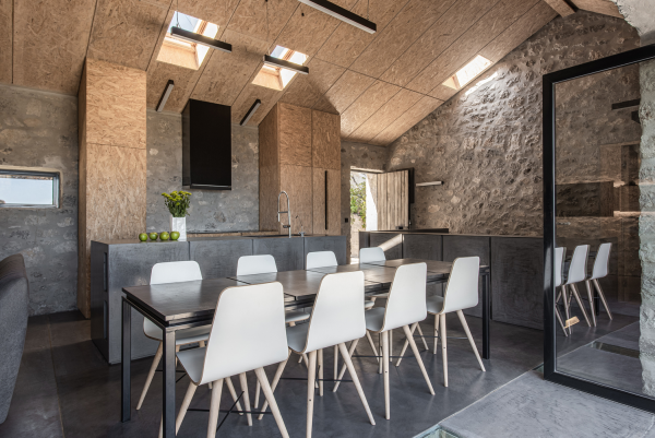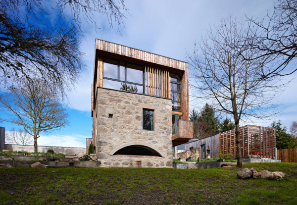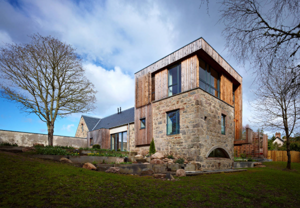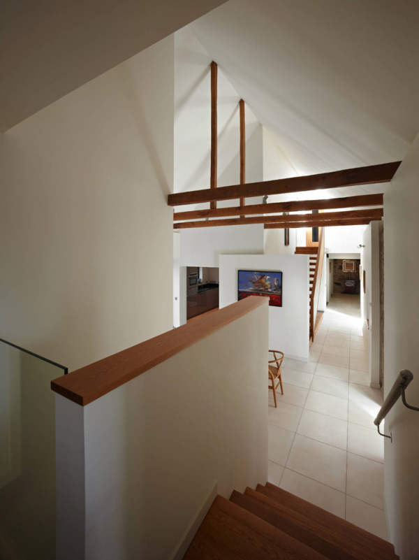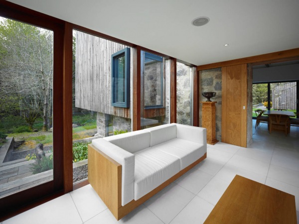 Rumah pedesaan dengan sentuhan dinding batu alam dan kayu ini terletak di Inggris.