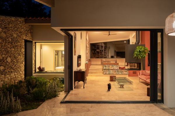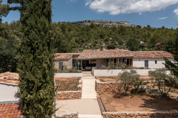 Rumah pedesaan yang memanjang ke samping ini terletak di Prancis.