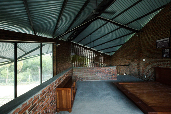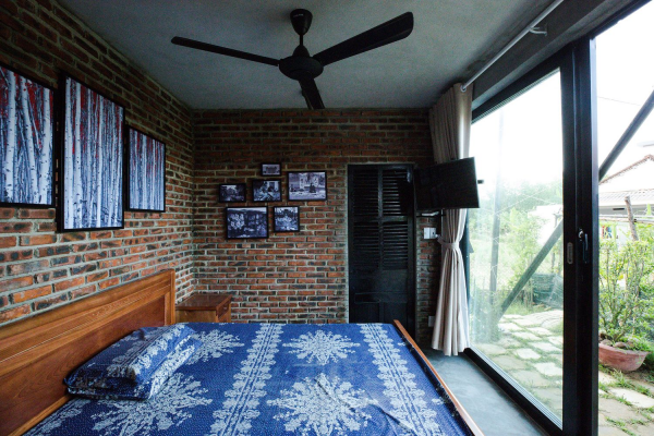 Interior kamar dengan dindng bata merahnya yang menarik.