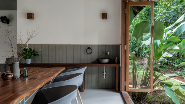 Rumah pedesaan yang unik ini terletak di Vietnam.