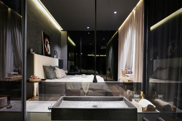Suka dengan pintu kaca gaya pivot nya yang cantik.