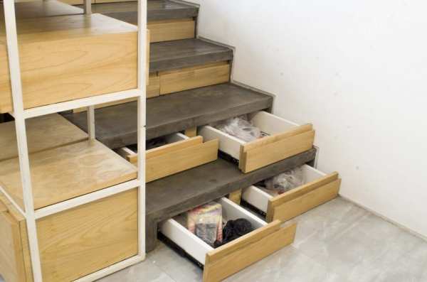 Serta anak tangga yang juga berfungsi sebagai tempat penyimpanan.