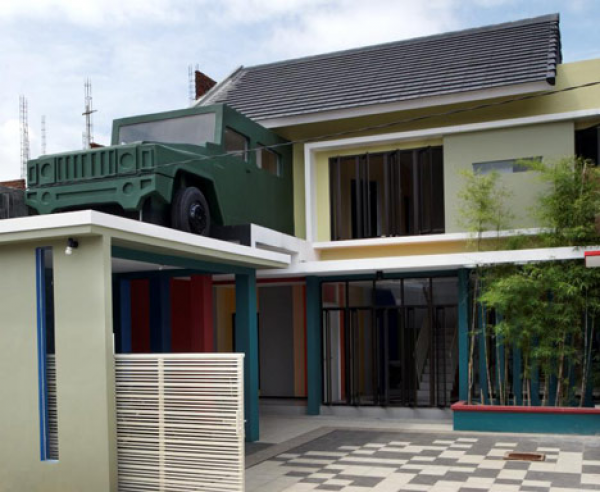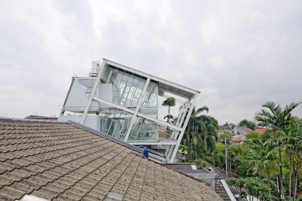Rumah dengan besi-besi kokoh yang diberi nama 'rumah miring' ini terletak di Jakarta.