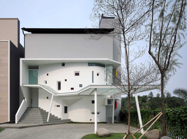Rumah dengan nuansa putih ini merupakan karya arsitek Atelier Riri yang diberi nama " rumah Kiri's ".