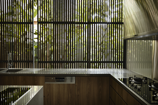 Rumah karya arsitektur Singapura dengan sentuhan bata eksposnya.