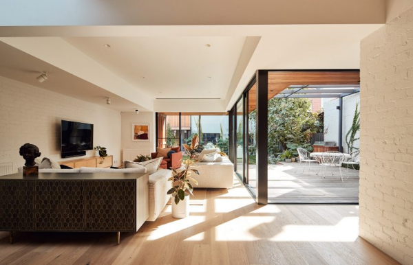 Salah satu aspek menarik dari desain rumah modern di Australia adalah integrasi antara ruang dalam dan luar. Banyak rumah di Australia didesain dengan pintu geser atau jendela kaca besar yang memungkinkan aliran udara dan cahaya alami masuk ke dalam rumah. Ini menciptakan suasana terbuka dan menghubungkan penghuni rumah dengan alam di sekitarnya.