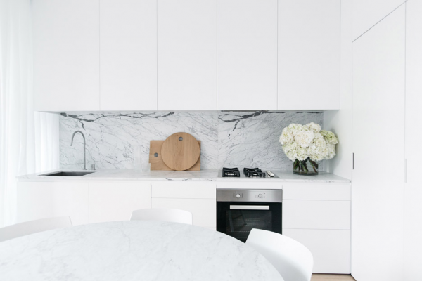 Dengan dapur yang cantik bernuansa hitam putihnya.