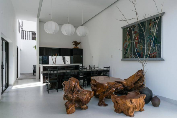 Pemanfaatan alam: Penggunaan material alami seperti kayu dan batu menjadi salah satu elemen penting dalam desain rumah modern di Vietnam.