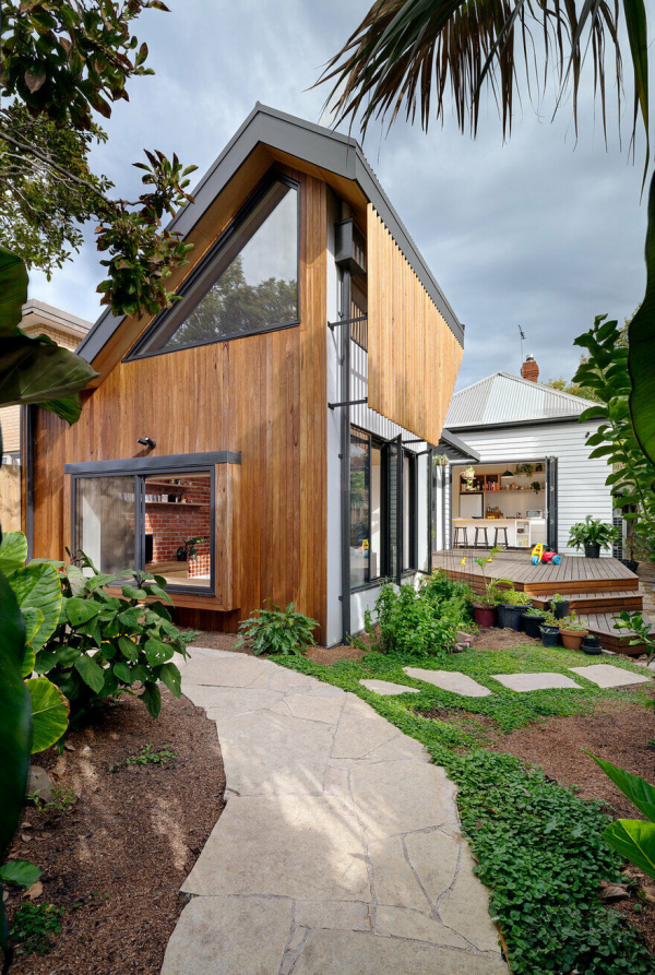 Rumah yang cantik dengan dinding kayunya.