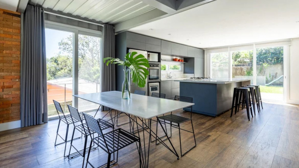 Ini dia tampilan dapur dan ruang keluarga yang menyatu.