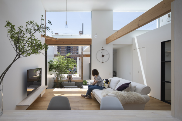 Dengan ruang tamu dan dapur terbukanya.
