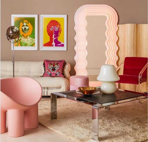 Tambahkan aksesori dekoratif yang besar dan berlebihan, seperti bantal-bantal besar dengan motif yang mencolok, karpet tebal dengan pola yang berani, atau lukisan dengan bingkai yang berukuran besar. Juga, gunakan lampu gantung yang besar dan berbentuk unik untuk menciptakan sentuhan dramatis.