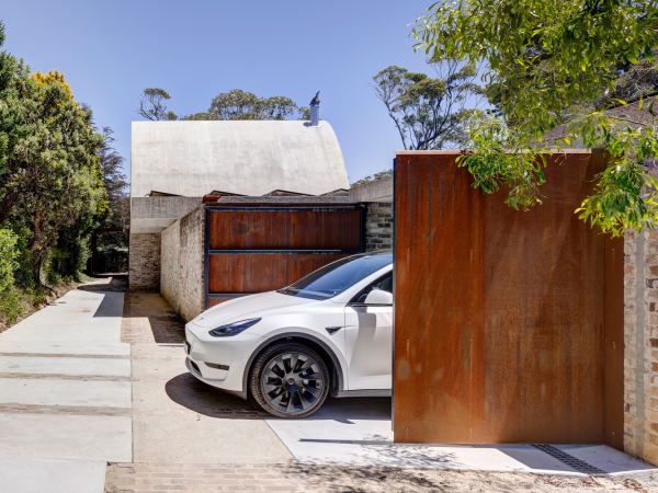 Rumah keren dengan desain simple dan sentuhan dinding bata merahnya.