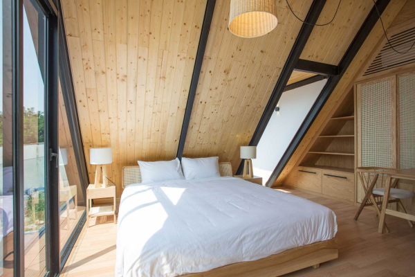 Dan kamar dengan sentuhan aksen kayunya yang menarik.