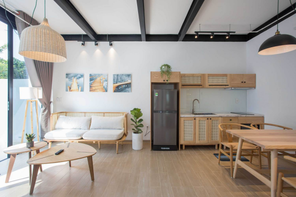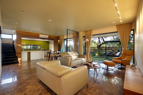 Ini dia tampilan ruang tamu dan dapur dengan konsep terbukanya.