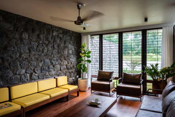 Ruang tamu dengan sentuahn batu alam nya.