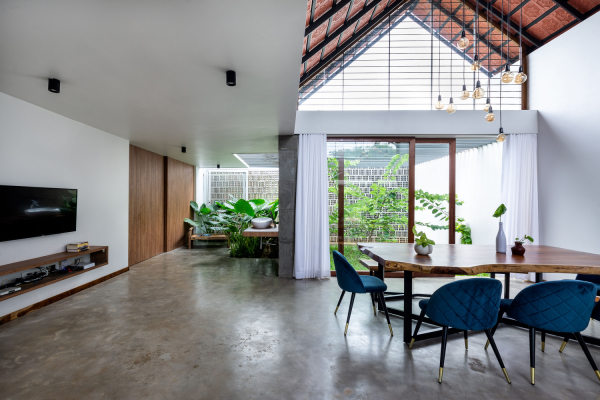 Dengan ruang keluarga konsep terbukanya.