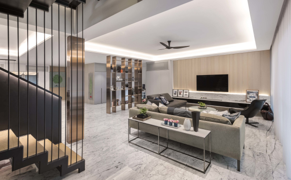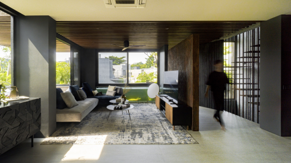 Dengan ruang keluarga yang minimalis.