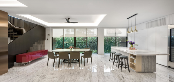 Dengan desain dapur dan ruang keluarga dengan konsep terbukannya.