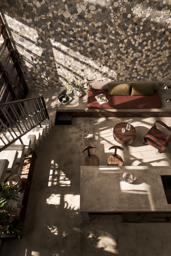 Rumah yang cantik dengan sentuhan semen ekspos dan tembok batu alam yang keren ya guys.
