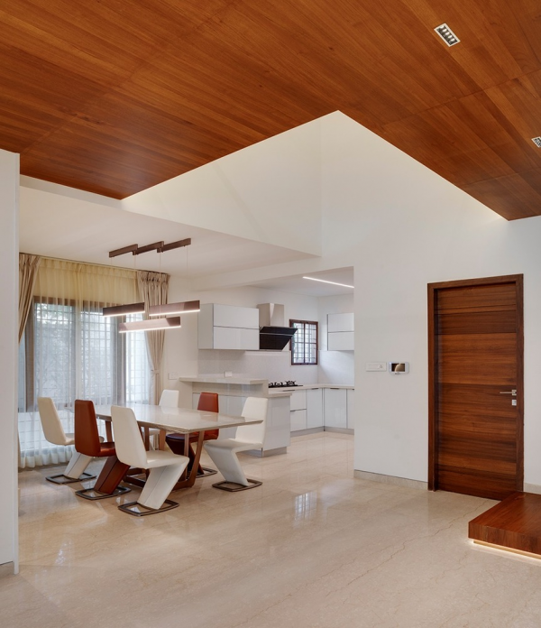 Dengan interior dapur dan meja makannya yang cantik.