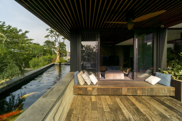 Dengan kolam ikannya yang cantik.