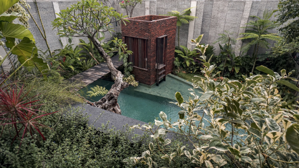 Kolam renang mungil leter L yang menarik bukan.