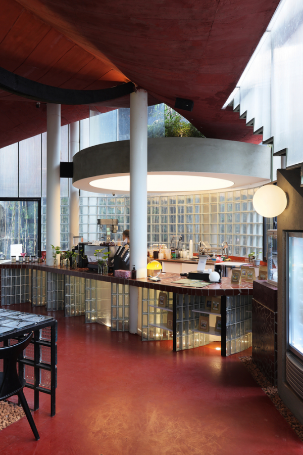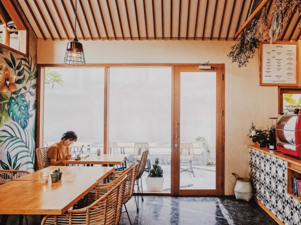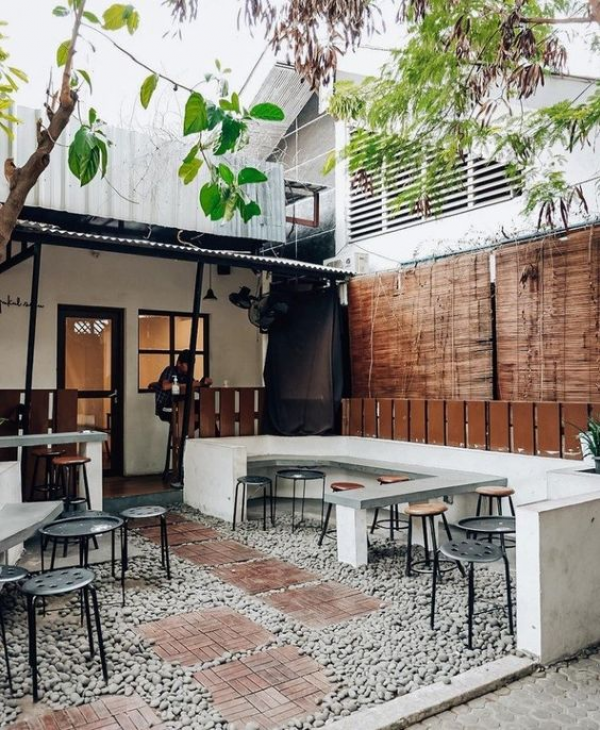 Cafe semi outdoor yang menarik ya moms.
