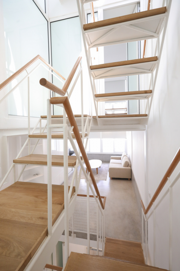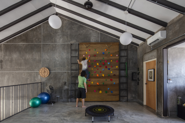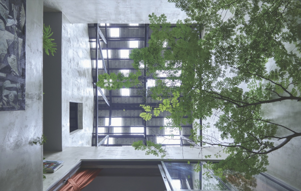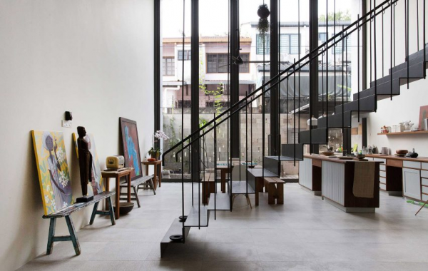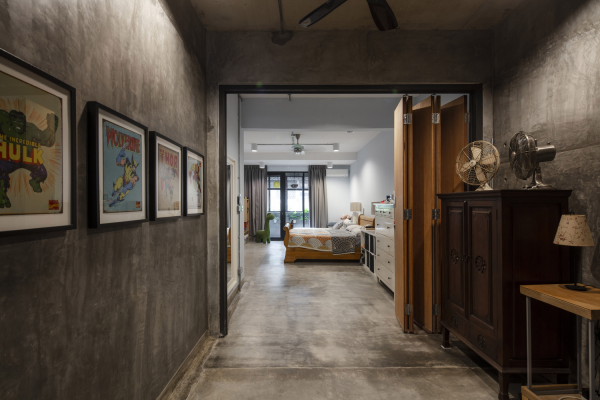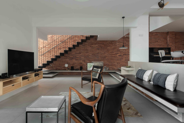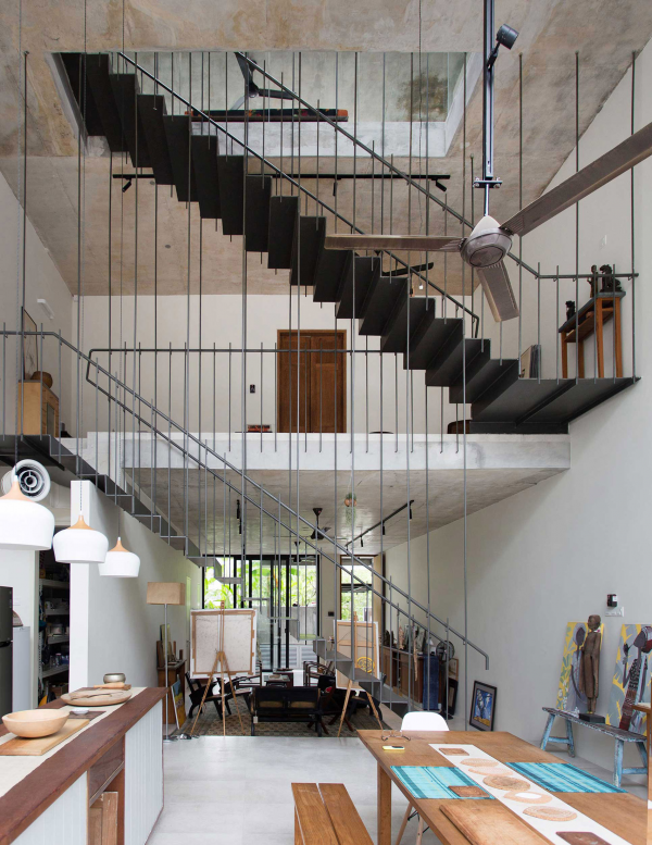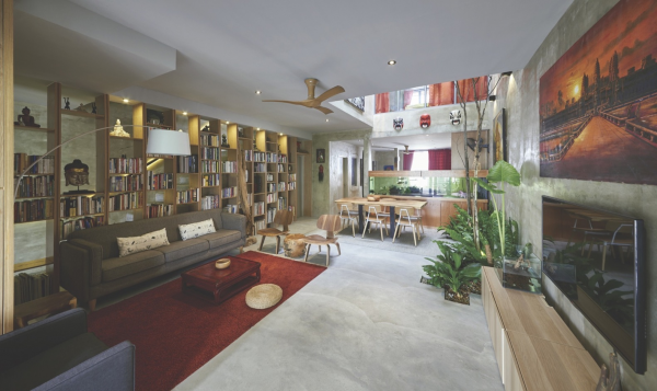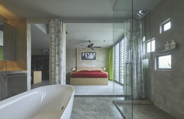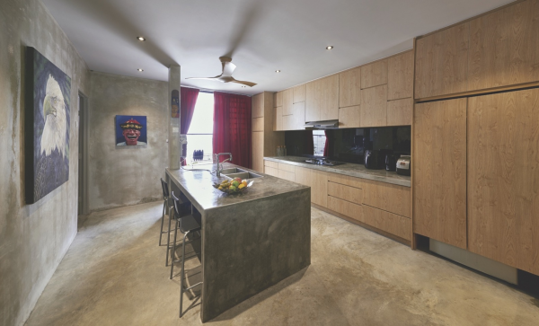 Rumah yang cantik dengan dinding semen ekspos ini berada di Kuala Lumpur.