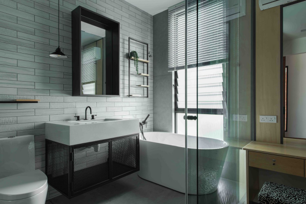 Ini dia penampakan kamar mandi dengan bathtub minimalisnya.