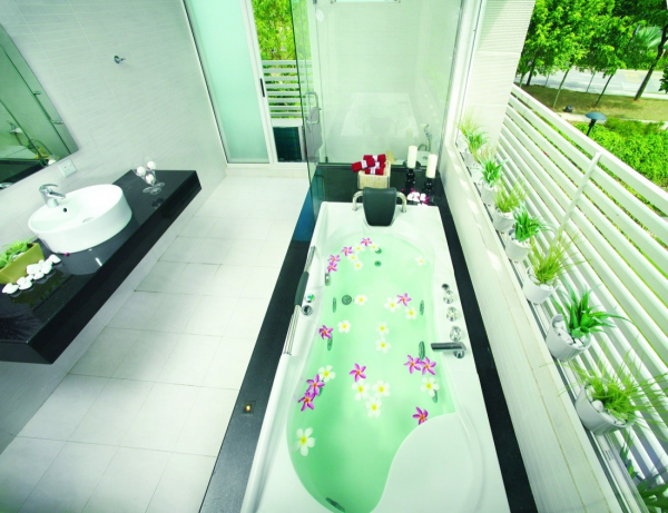 Dengan kamar mandinya yang cantik.