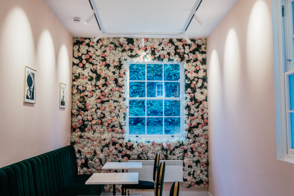 Tak hanya penampilan luar, interior Cafe Saint Aymes ini juga penuh dengan bunga-bunga yang cantik loh.