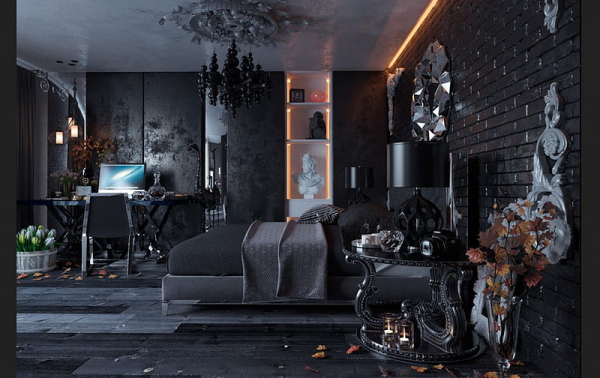 Interior kamar gaya ghotic yang dengan nuansa misterius ya guys.