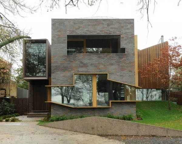 Desain rumah postmodern dengan kombinasi dinsing yang cantik.