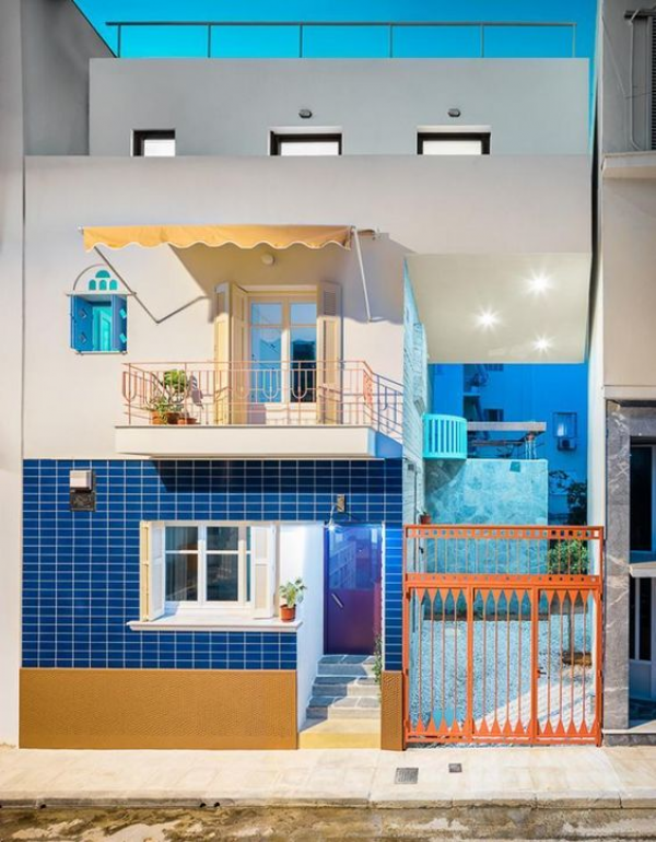 Desain rumah postmodern dengan warna cerah nya.