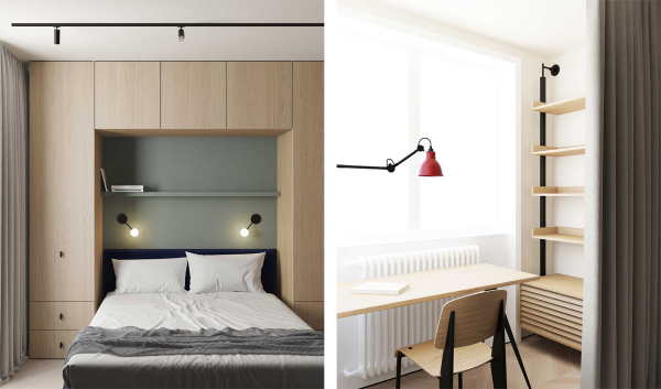 Gunakan penyimpanan tersembunyi, seperti lemari dengan pintu geser atau tempat tidur dengan laci bawah.