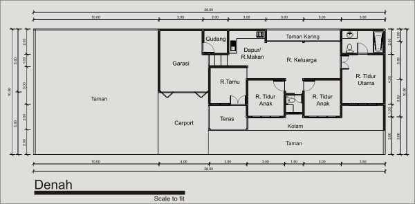 Contoh gambar lay out rumah yang memanjang ke samping.