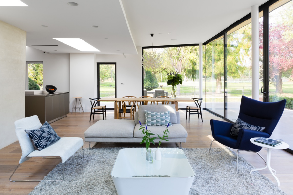 Ruang keluarga terbuka yang cantik.