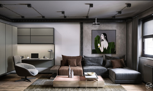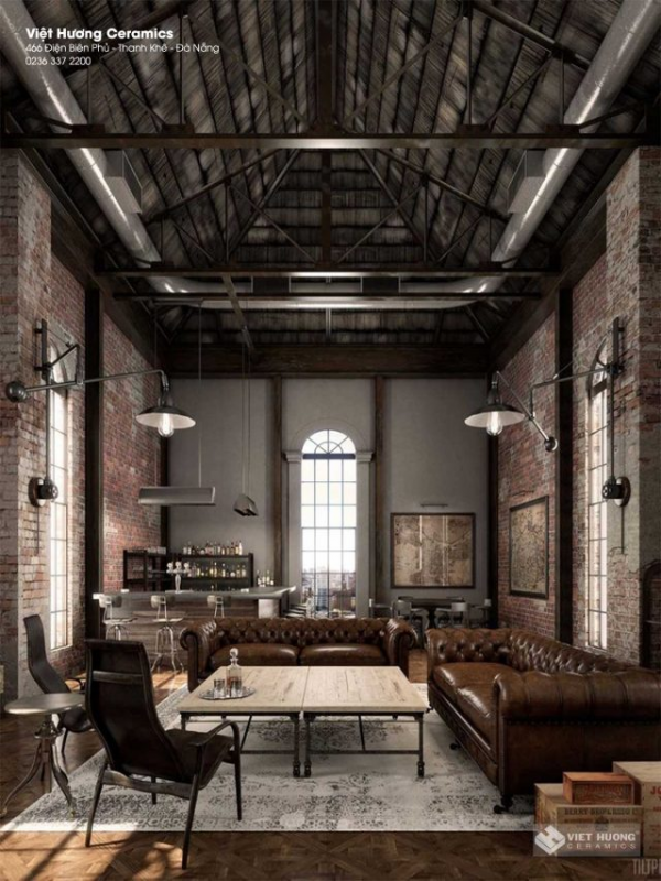 Perabotan seperti rak kayu bergaya industrial dan lemari besi vintage akan melengkapi tampilan ruang tamu Anda. Tambahkan karpet berbulu tebal di bawah meja kopi dan sofa untuk memberikan sentuhan rustic yang hangat dan nyaman. Aksesori seperti lampu gantung dengan desain industrial juga akan menjadi tambahan yang menarik.