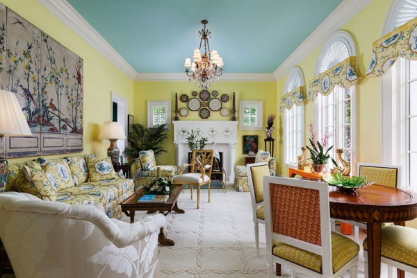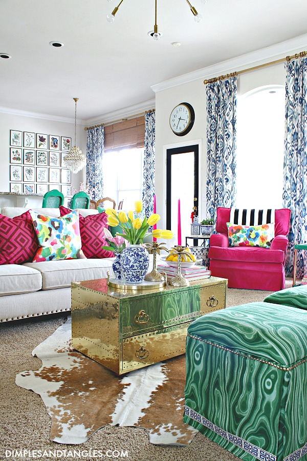 Warna-warna cerah dan berani digunakan dalam desain interior grandmillennial untuk menciptakan suasana yang hidup dan menyenangkan. Misalnya, kombinasi warna-warna cerah seperti kuning, merah, hijau, atau biru dalam ruangan.