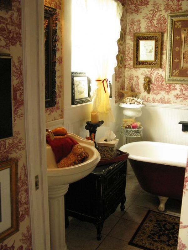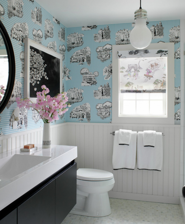 Masih dengan kamar mandi toile de jouy yang menarik.