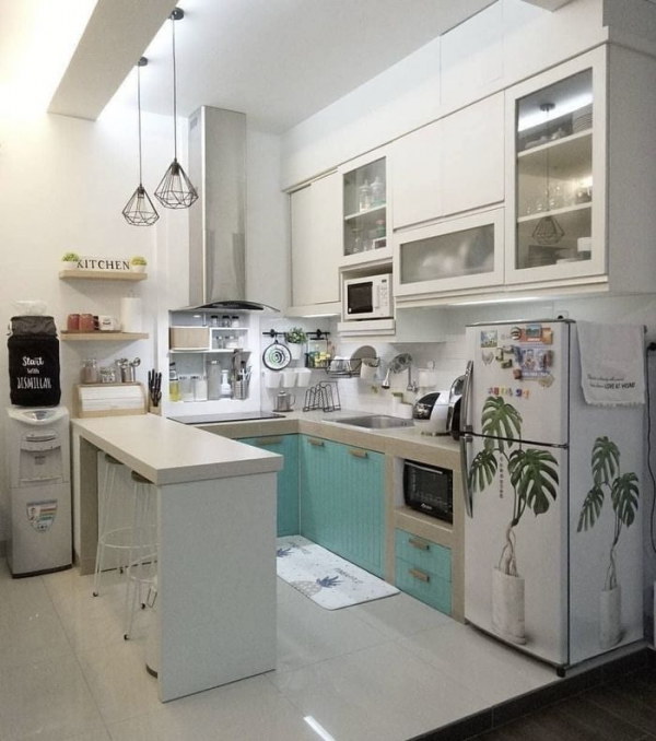 Dapur letter U dengan kombinasi warna yang cantik ya moms.